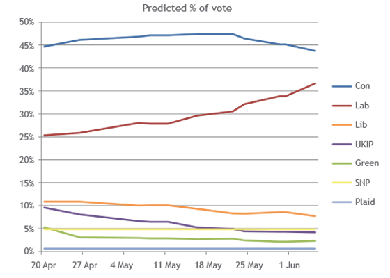 A ‘hung Parliament’ is looking increasingly possible given recent polls. All predictions are agreed that the largest single party is likely to remain the Conservatives; however our analysis suggests that in the event of a hung Parliament, a left-wing coalition government is the most likely outcome. A recent poll by YouGov predicted Labour and the SNP together would fall short of a majority by just 9 seats – easily within reach, given that the Liberal Democrats currently hold 9 seats. While a Conservative minority government is still technically possible, this is considered unlikely given the perceived need for a strong mandate ahead of the upcoming Brexit negotiations.